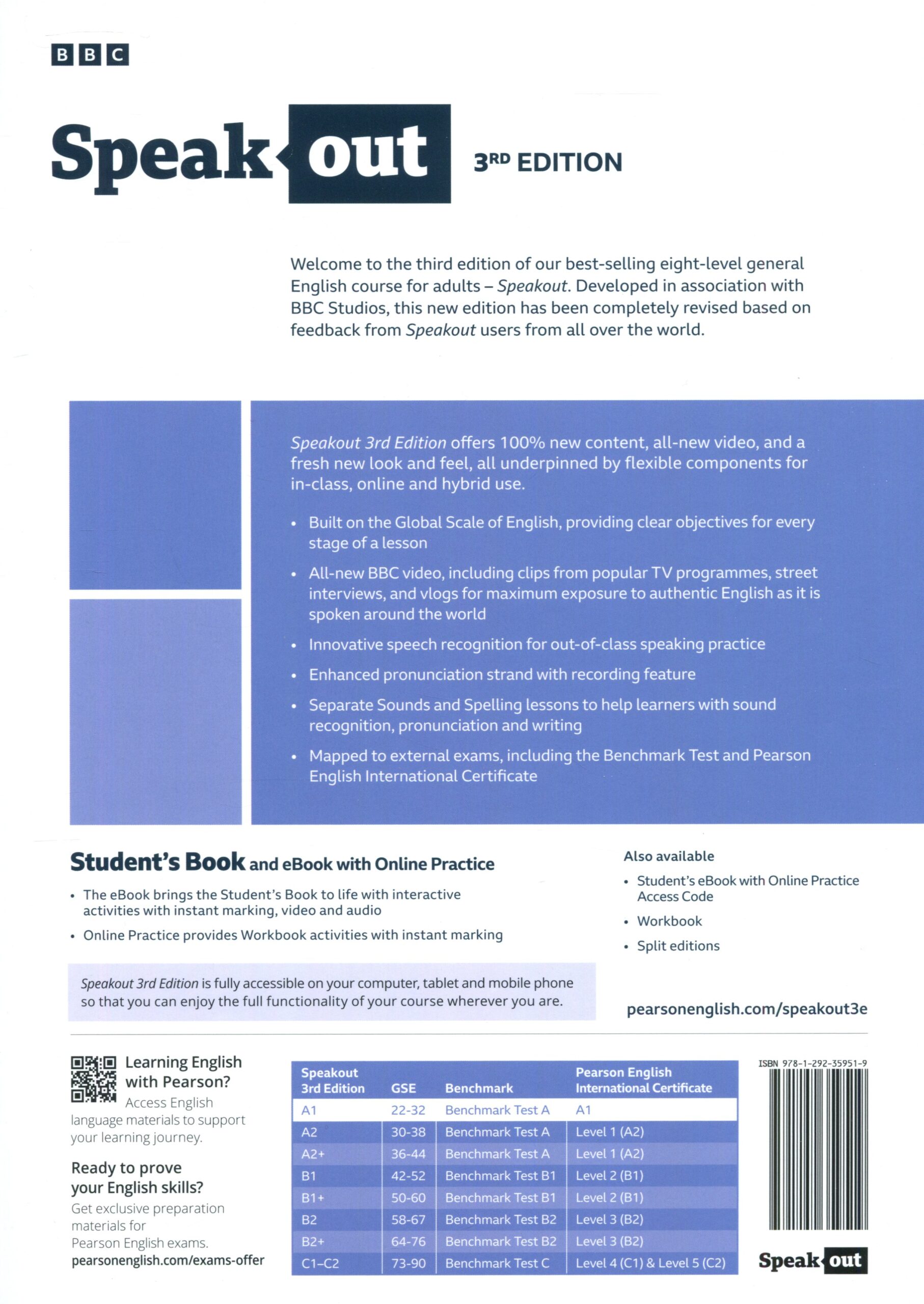 Speakout 3rd Edition სახელმძღვანელო წარმოადგენს პირსონის განახლებულ და სრულად გადამუშავებულ ინგლისურის კურსს, რომელიც შექმნილია BBC Studios‑თან პარტნიორობით. სერია აერთიანებს თანამედროვე შინაარსს, მოქნილ ციფრულ პლატფორმას და სწავლების იმ მეთოდოლოგიას, რომელიც რეალურ კომუნიკაციაზეა ორიენტირებული. კურსი ეფუძნება Global Scale of English‑ს, რაც თითოეული გაკვეთილისთვის მკაფიო, ადვილად გასაგებ და გაზომვად მიზნებს უზრუნველყოფს.